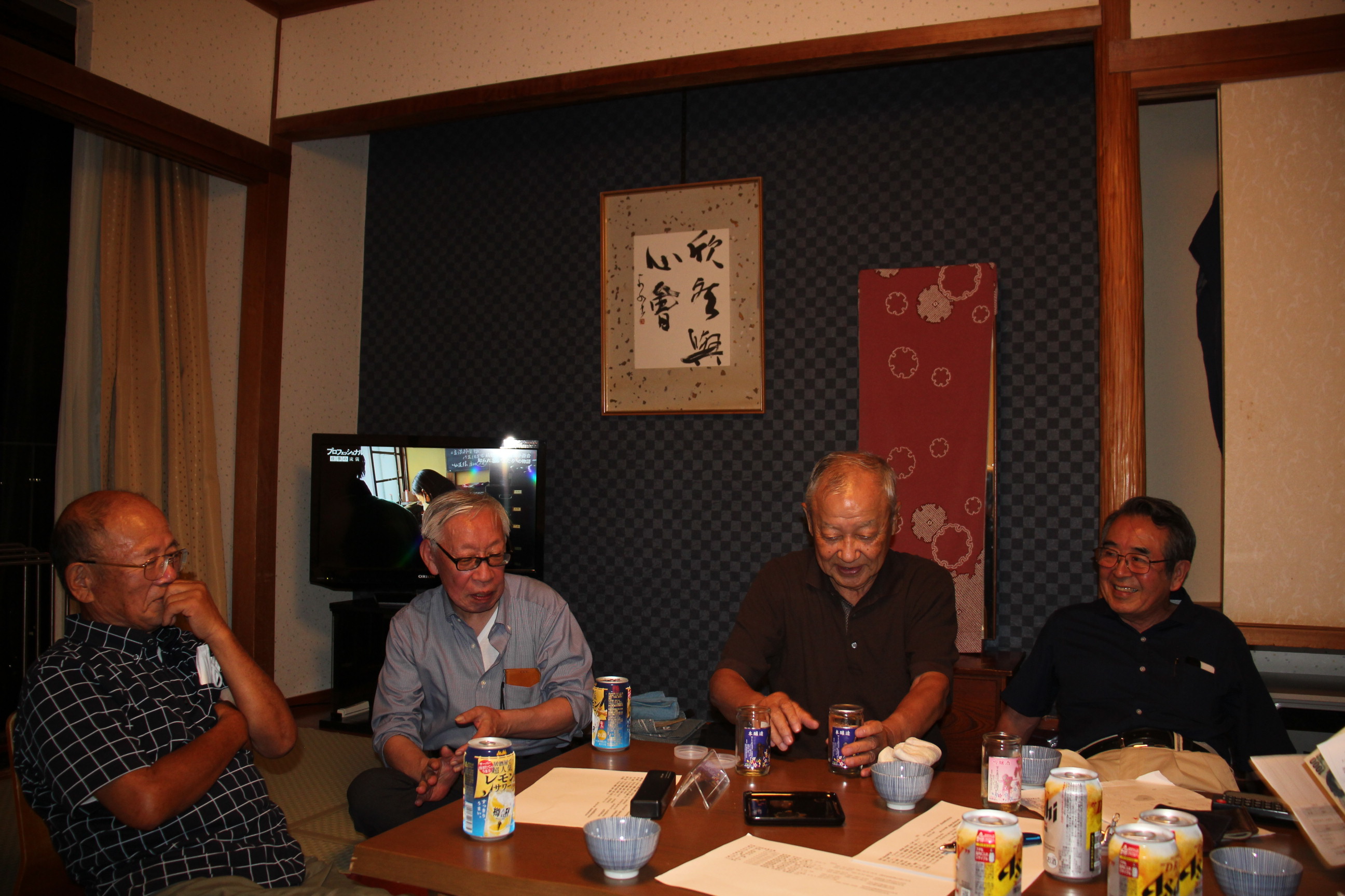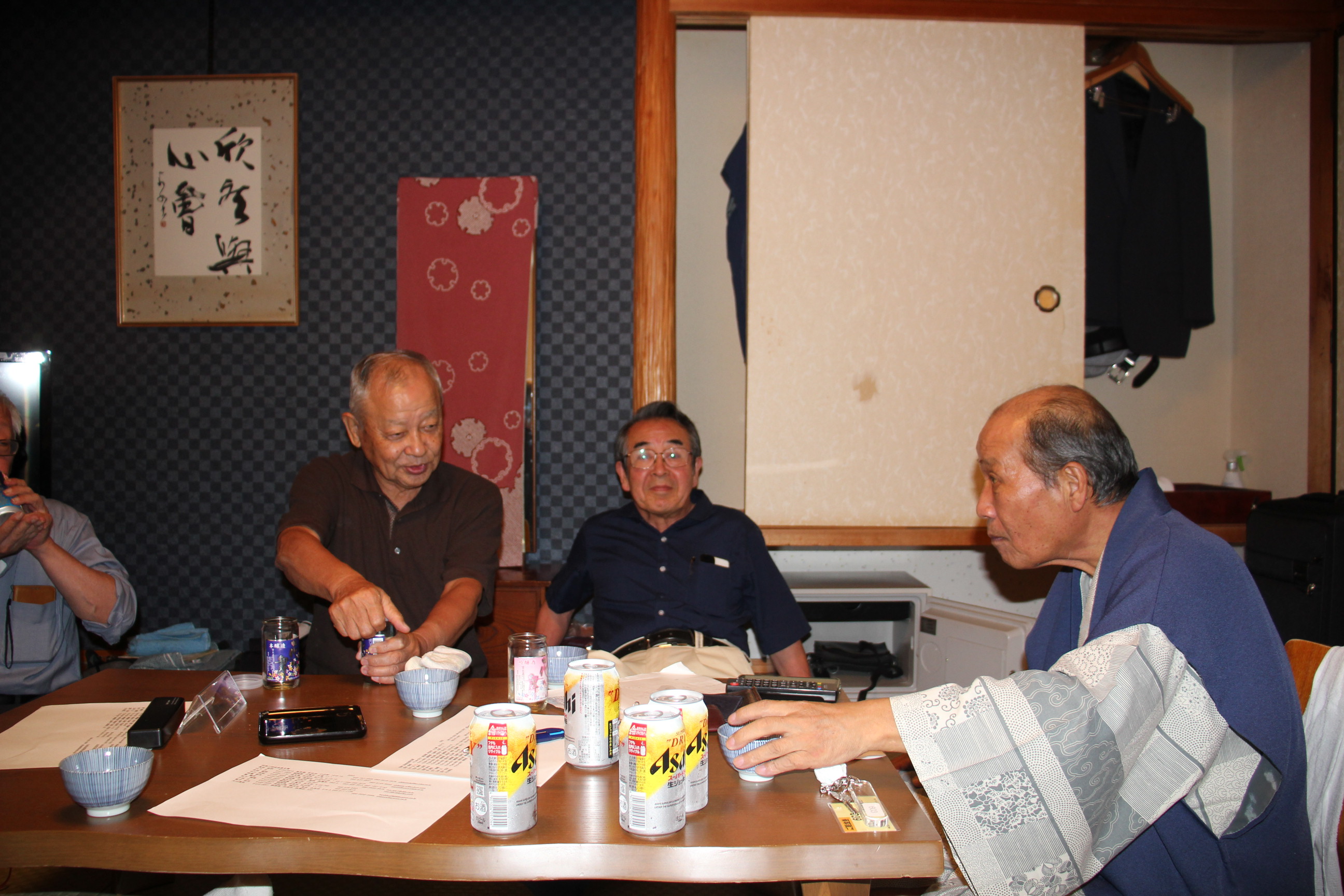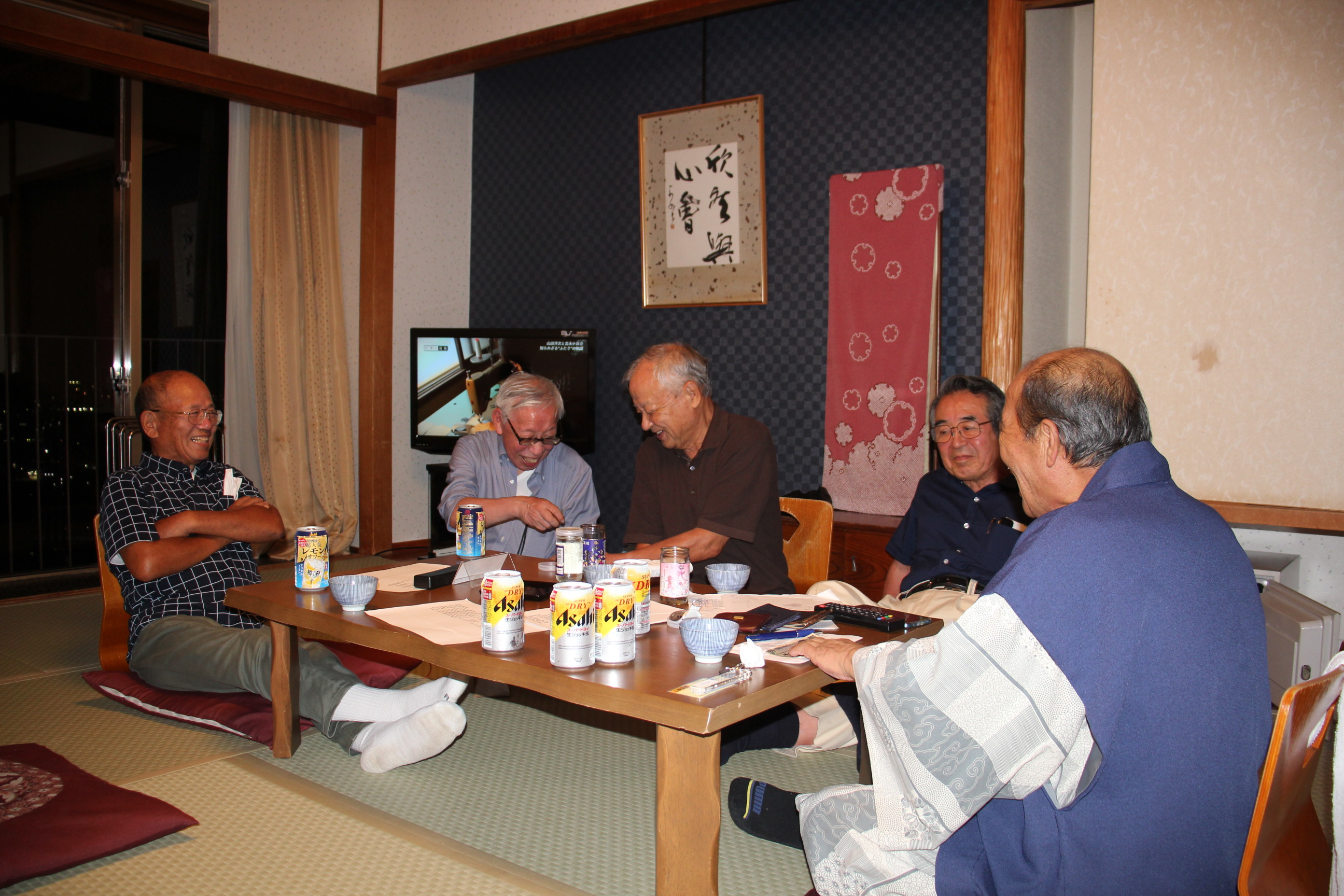 2023年09月27日~28日 二回会が開催されました。 ( 静岡県伊豆の国市の 「大仁ホテル」 にて ) 参加者: 長田氏ご夫妻、大川氏(&パートナー)、芝田氏、山下喜久雄氏、成瀬氏、平本 参加人数は8名で、コロナの影響があったため、 久しぶりの開催とあって、とても盛り上がり楽しい会となりました。 宴会場では美味しい料理と酒、話で盛り上がりました 部屋に戻り、話で盛り上がり、23時頃にお開きとなりました。 次回は、2024年の3月、または4月に、開催予定です。 今回参加いただけなかった方の参加をお待ちしております。 |